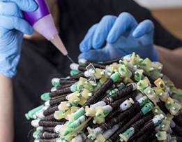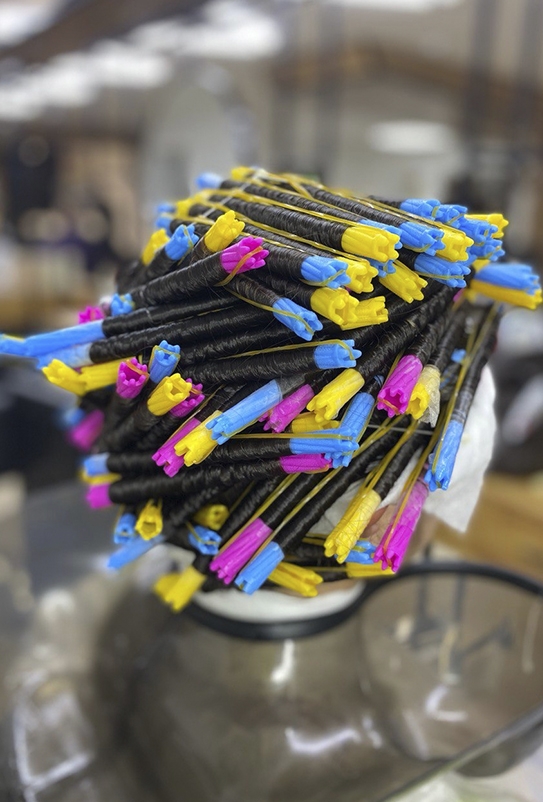 •Равномерный завиток от корней до концов. •Завитки выглядят отчетливо висящими вниз. •Дополнительно скручиваются в жгут, только потом накручивают на коклюшку. Что придает фактурурности и упругости завитку •Более объемный завиток, если сранивать со спиральным.