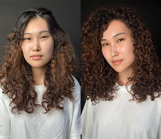 •Травмированные волосы по длине •Экстра длинные волосы •Завивка отрасла в зоне корней и пора обновить кудри